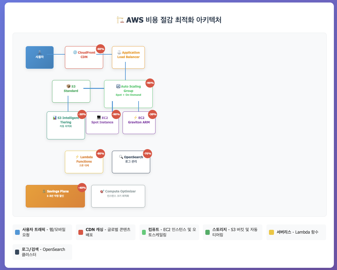 EC2 비용 절감: Spot 인스턴스와 오토스케일링 활용EC2를 계속 온디맨드로만 사용하면 요금이 크게 나옵니다. Spot 인스턴스를 사용하면 최대 90%까지 절약할 수 있어요. ASG(오토스케일링 그룹)를 같이 쓰면 Spot이 회수돼도 자동으로 온디맨드로 전환해 다운타임 없이 운용할 수 있습니다.